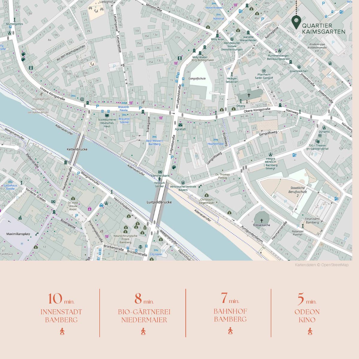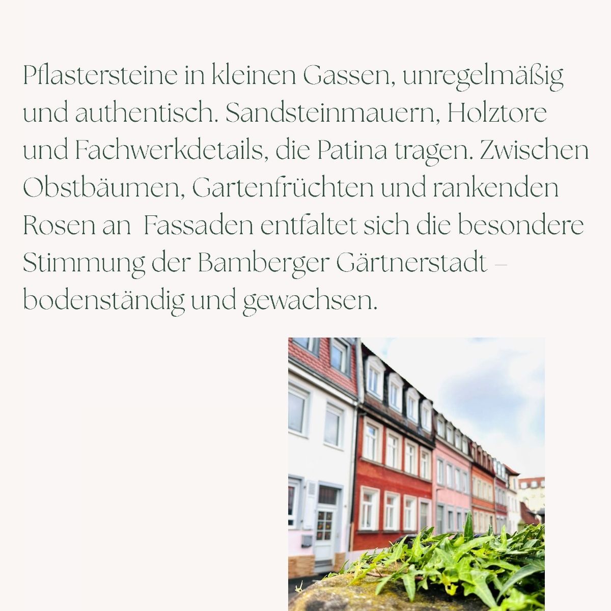 Die Bamberger Gärtnerstadt ist ein Ort mit Seele: jahrhundertealte Hausgärten, historische Strukturen und ein Stadtbild, das in dieser Form bundesweit einzigartig ist. Das Quartier Kaimsgarten fügt sich harmonisch in dieses kulturelle Erbe ein – und schenkt seinem Alltag eine besondere Atmosphäre. Inmitten dieses lebendigen Stadtteils verbinden sich Vergangenheit und Gegenwart auf eindrucksvolle Weise. Beim Spaziergang durch die Straßen spürt man die Spuren der Gartenbautradition, sieht gepflegte Gärten, liebevoll erhaltene Fassaden und kleine Wege, die von Generationen genutzt wurden. Willkommen in einem Quartier, das seinen Charakter bewahrt – und Ihnen zugleich Freiraum schenkt.
